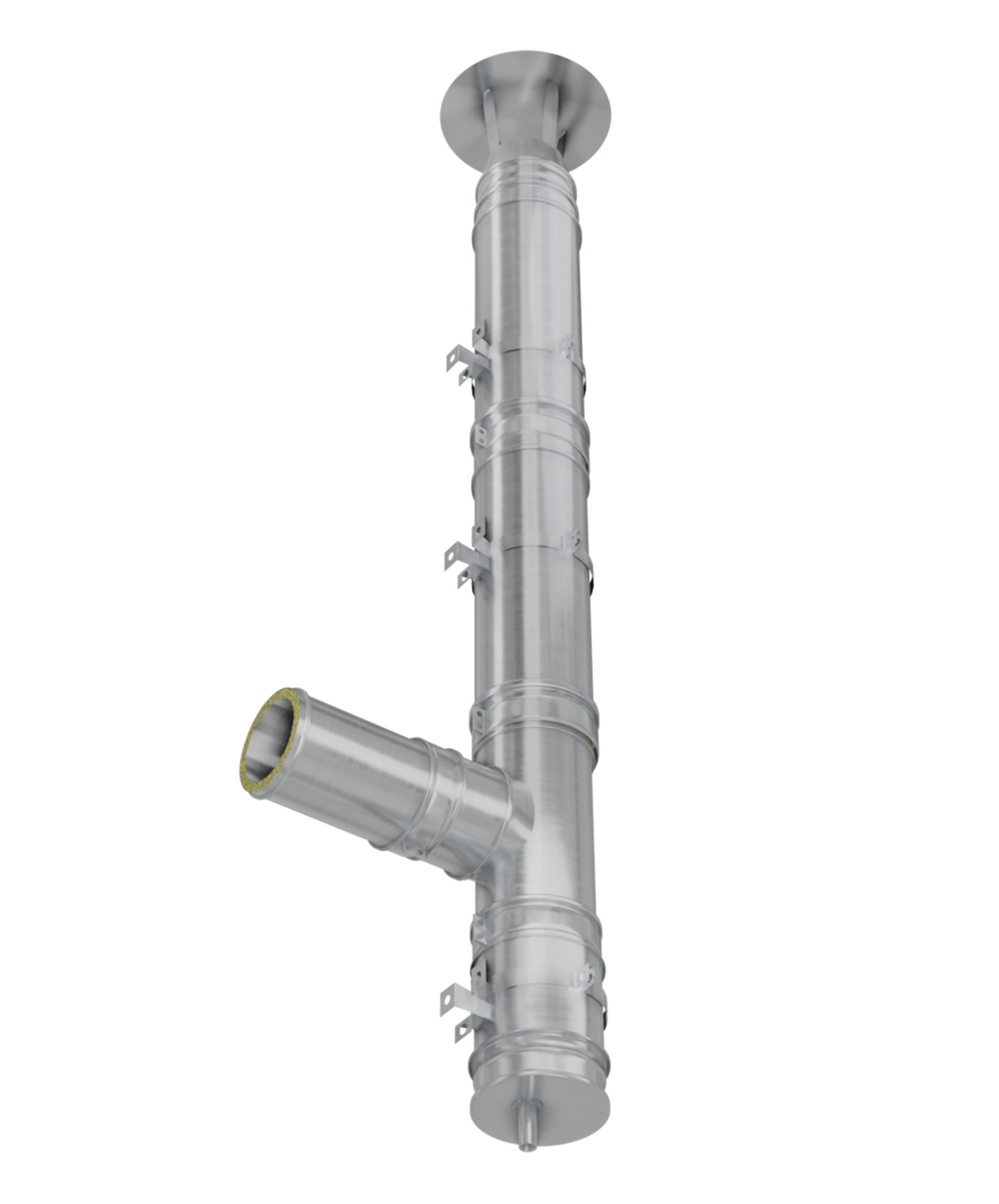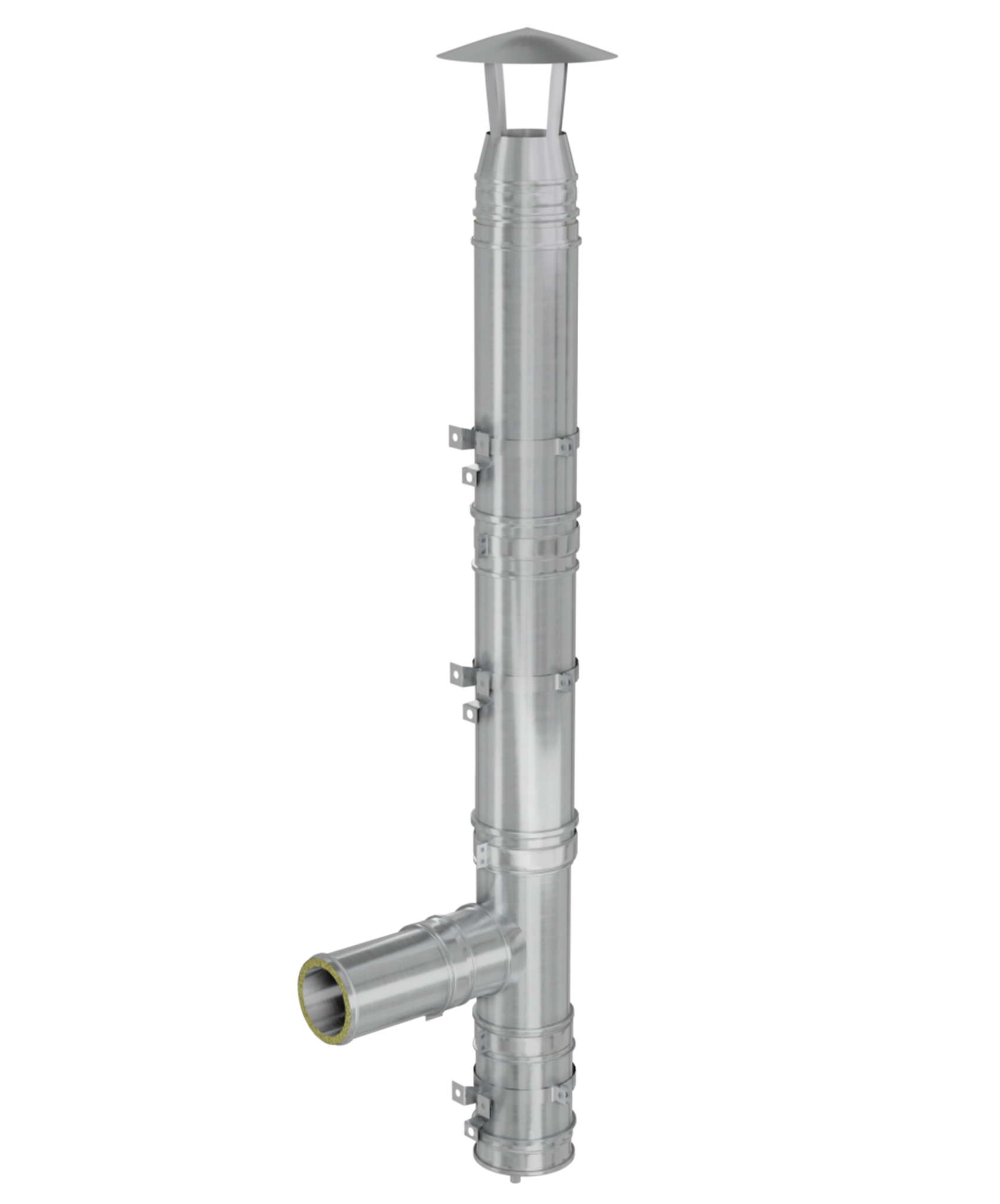 Pornirea coșului de fum poate fi de jos, de la sol cu baza „nivel 0” sau de pe perete cu coliere fixe de prindere în 3 puncte.