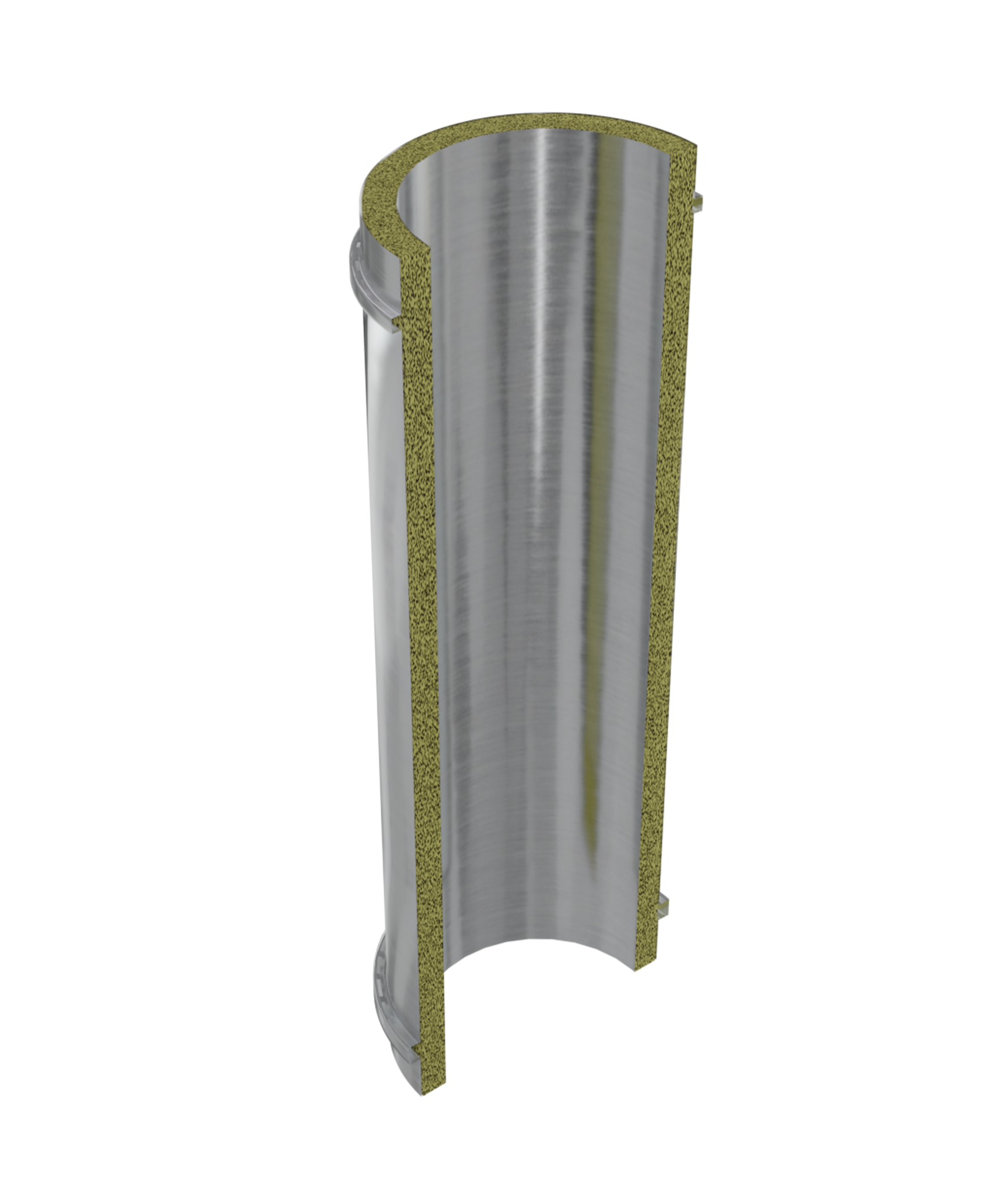 Construcția coșului de fum este de tip „dublu perete izolat”, având grosimea vatei de 2.5 cm, cu densitate de 90 kg/mc.